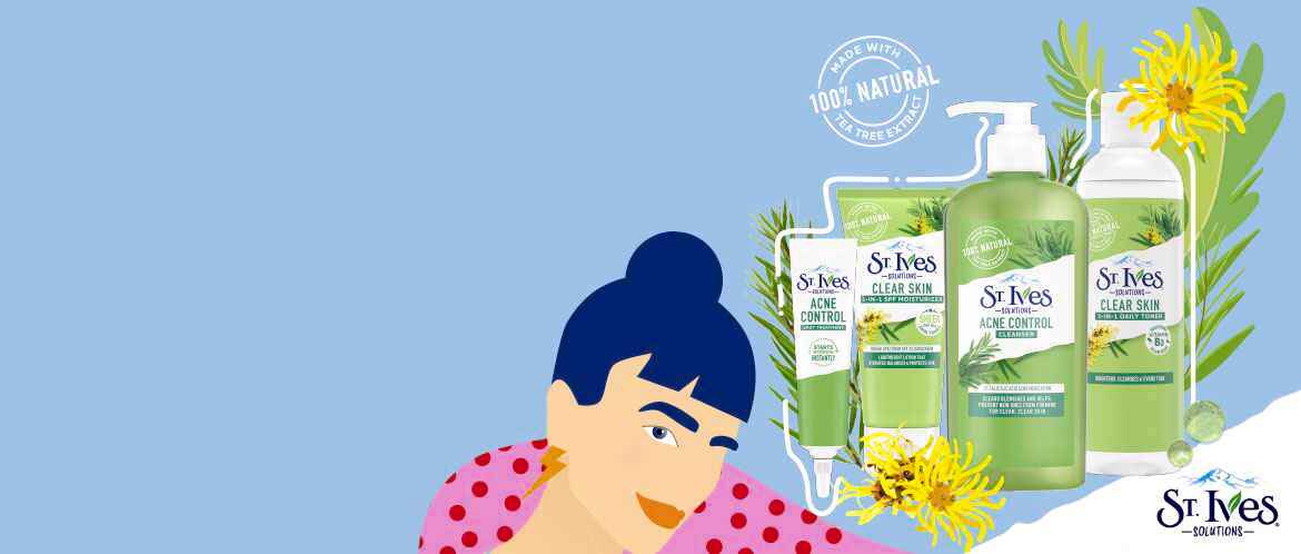 There’s no doubt that our relationship to our acne is complicated and borderline toxic. Like a bad breakup, acne often comes crawling back into our lives just as you think you’ve moved on. This time though – we mean it. It’s time to say goodbye to acne and hello to our newest zit-zapping line of St. Ives Acne Control Cleanser and spot treatment with salicylic acid to treat and prevent breakouts and our Clear Skin toner and SPF moisturizer to help keep skin clear. Plus, we don’t test on animals anywhere in the world, and we’re PETA approved!