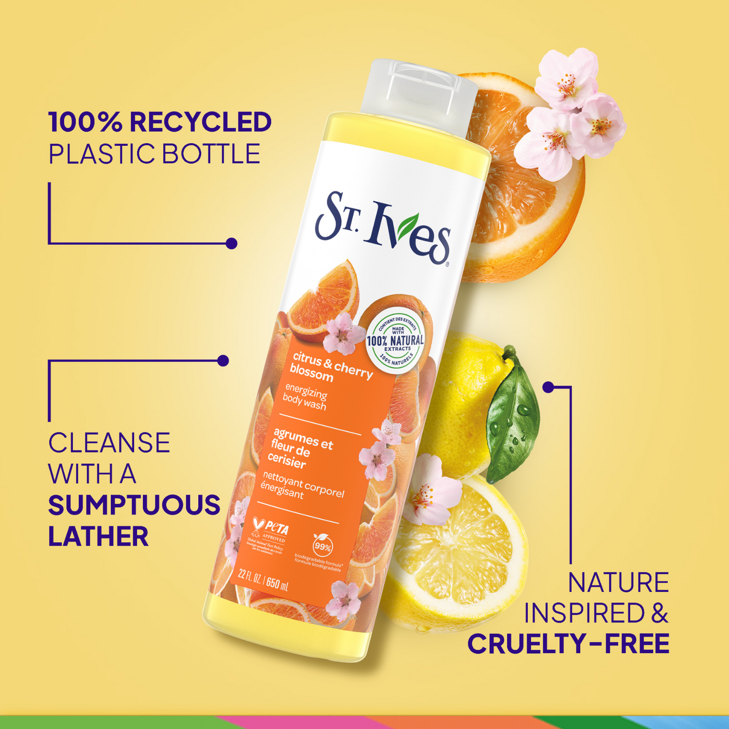 St. Ives Energizing Body Wash for Women, Citrus & Cherry Blossom, 22 fl oz / 650ml