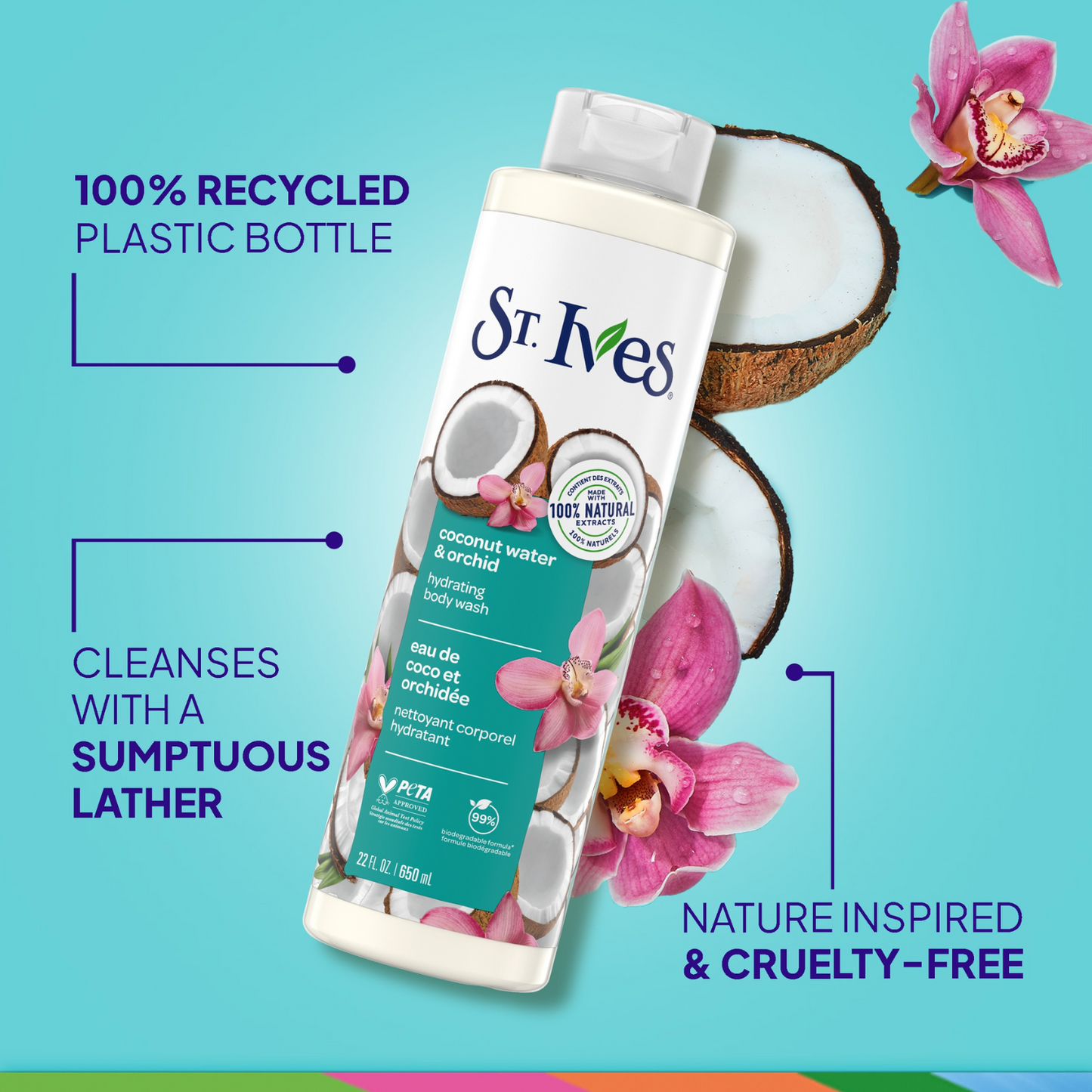 St. Ives Hydrating Body Wash for Women, Coconut Water & Orchid, 22 fl oz / 650ml