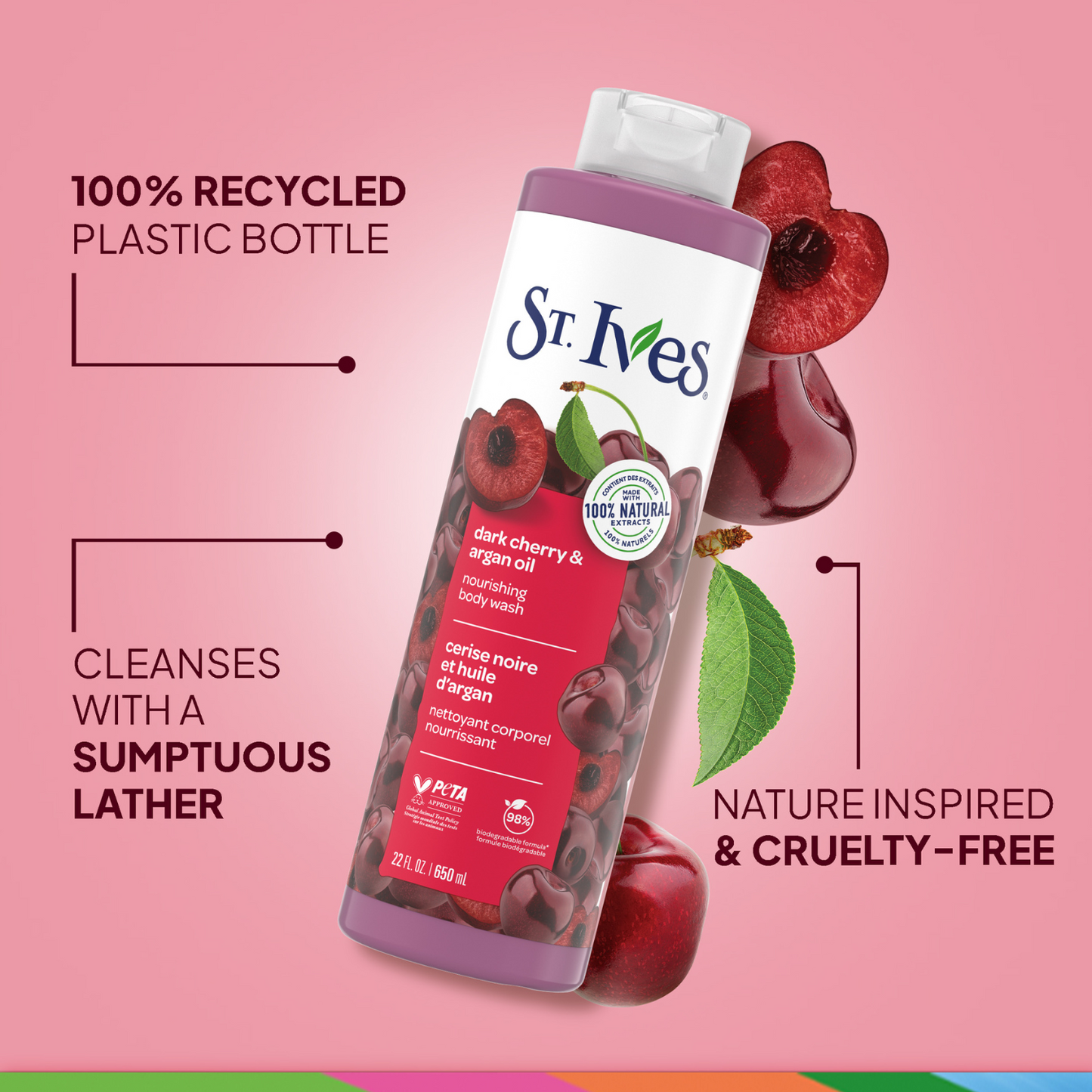 St. Ives Nourishing Body Wash for Women, Dark Cherry & Argan Oil, 22 fl oz / 650ml