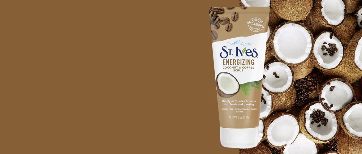 Prêt à tenter le coup, ou devrions-nous dire, à « briller » ? Gommage visage au café et à la noix de coco St. Ives Ce gommage exfolie les pores en profondeur, nettoie, lisse et révèle votre teint. Composé d'exfoliants 100 % naturels (comme la poudre de coquille de noix) et d'extrait de noix de coco, il laisse votre peau revitalisée, incroyablement douce et lisse.