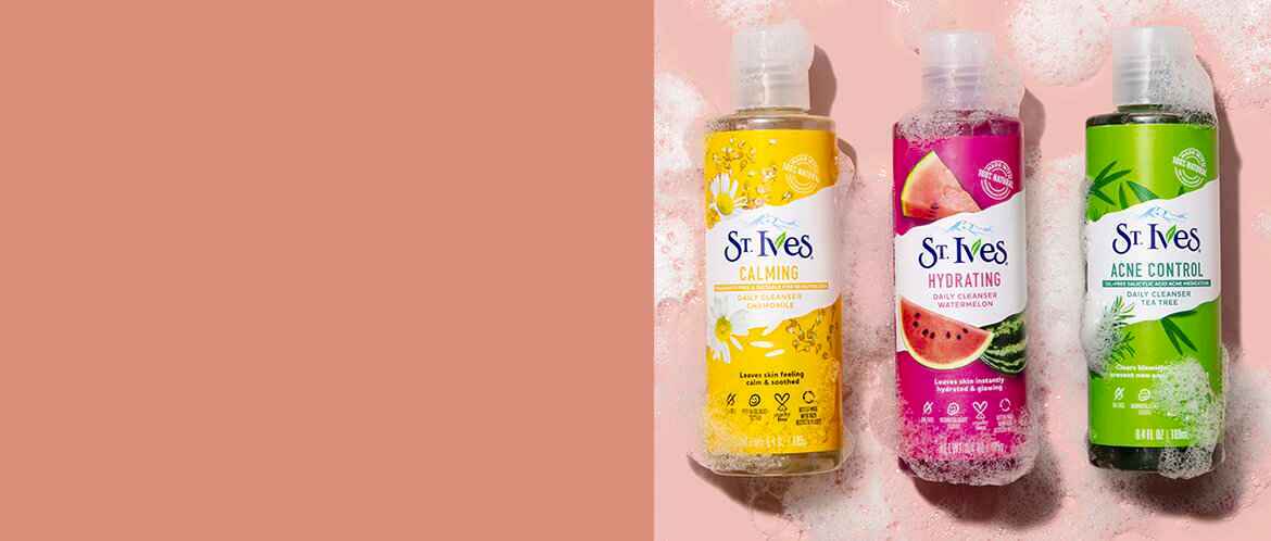 Éliminez l'excès de sébum produit pendant la nuit et révélez votre éclat naturel grâce à une nouvelle formule. Nettoyants visage quotidiens St. Ives . Formulés à base d'extraits 100 % naturels, choisissez entre la camomille apaisante, la pastèque hydratante ou l'arbre à thé anti-acné.